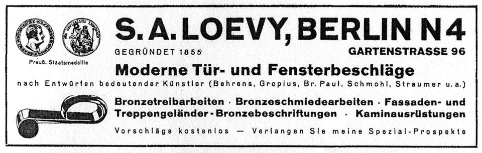 Architekt, gilt als Entwerfer des so genannten Reichsform-Drückers der tausendfach im Verwaltungsgebäude der IG Farben in Frankfurt a. M. Verwendung fand. Daran hat Loevy keinen Anteil, jedoch wurde der Reichsform-Drücker von der Firma ab 1930 angeboten.